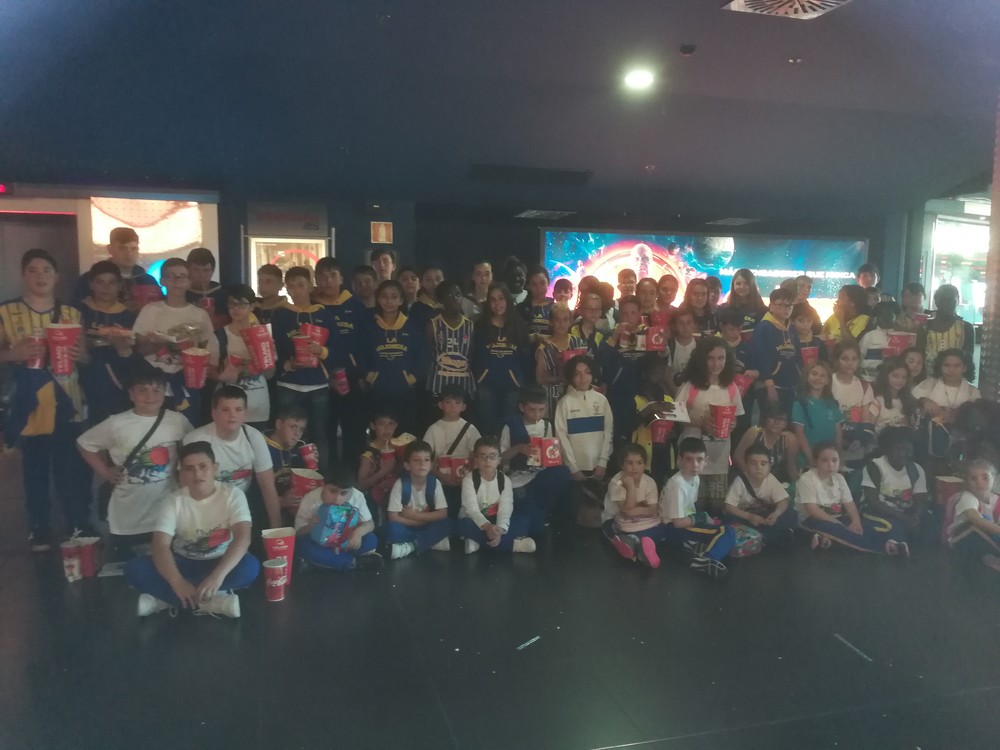 Casi un centenar de jugadores y jugadoras del CB La Mojonera disfrutaron el sábado de una visita al cine para ver la película "Campeones".